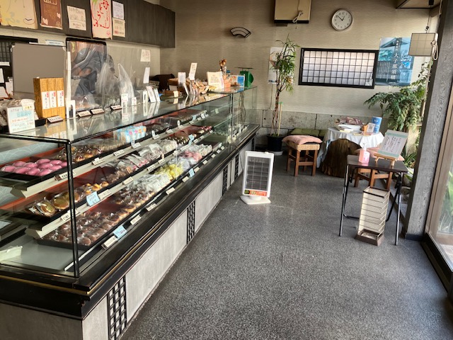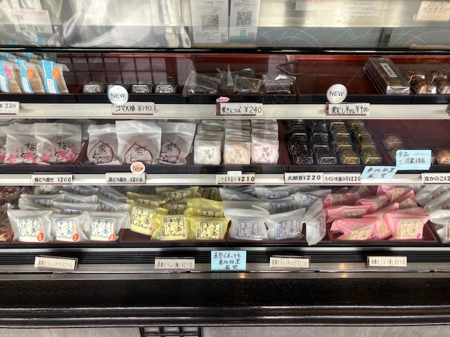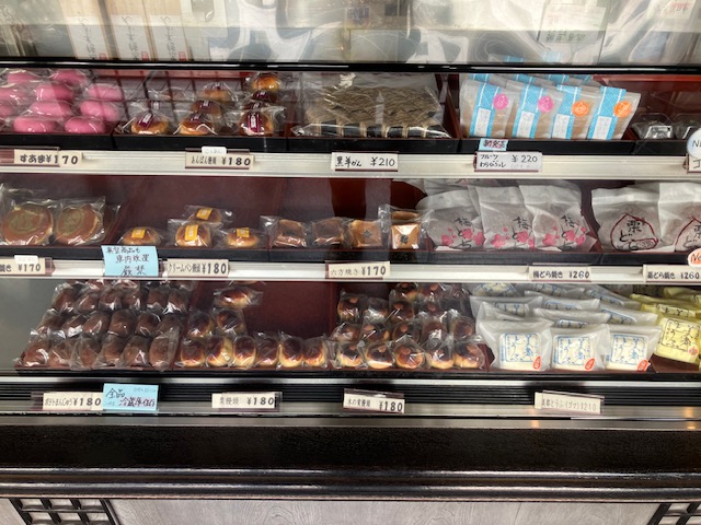 店内中央のショーケース内には、各種お饅頭類などの伝統的和菓子がずらりと展示されているのだ😄。