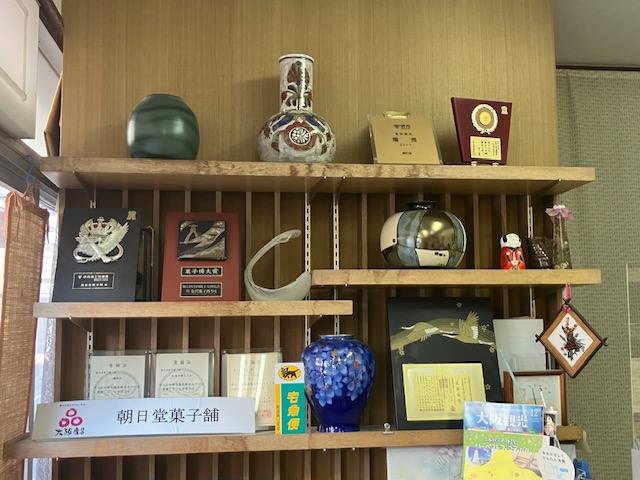 店内左手壁面棚には、過去菓子博受賞盾などが展示されているのだ😁。