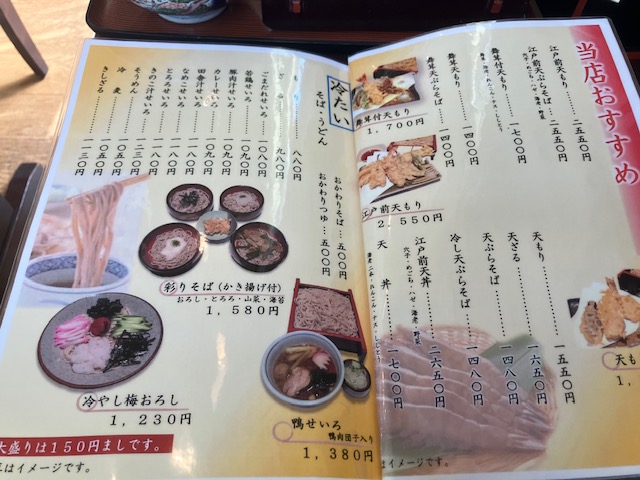 メニュー表。こたパパ大好物の「鴨せいろ」は写真付き。しかも鴨肉団子入りというのが気になるなぁ😄。