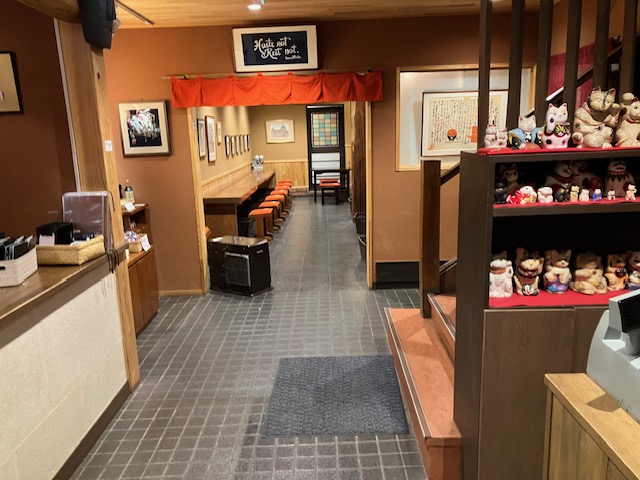入口左右にそれぞれ待合スペースがあるのだが、右側がわんこそば挑戦のお客様用、左側がそれ以外の一般のお客様用のようだな🙂。
