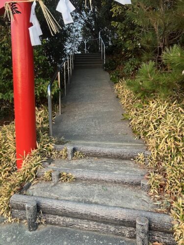 早速登山開始。鳥居を抜けると小さな階段が3段。さらにその奥に階段があり、右に曲がると山頂に到着するのだ。ちなみに標高は6.1mである😄。