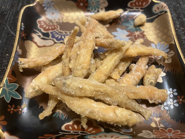 八郎湖産わかさぎを唐揚げにして、秋田味噌だれとデンマーク産最高級カマンベールチーズと合わせた現代的商品。まさにかりっとした食感に発酵系調味料が見事にマッチして、濃厚かつ奥深い味わい。ビールやハイボールのおつまみにしたら、絶対に止まらない美味しさなのだ🤤。