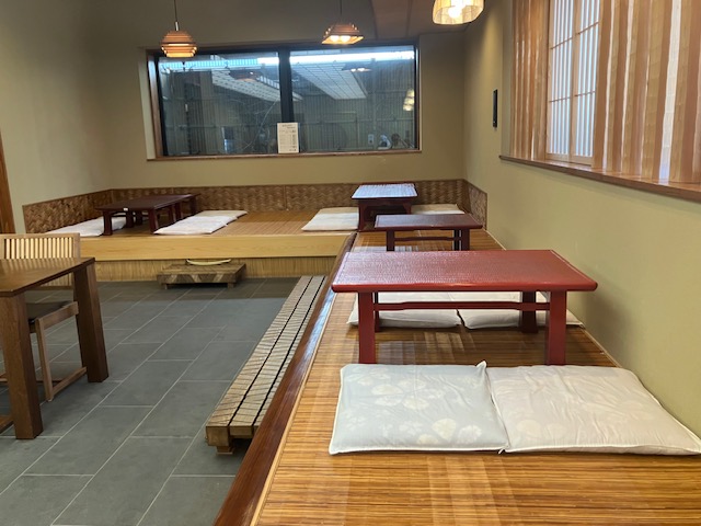 店内には100年老舗飲食店にはおなじみの、小上がりがL字型に設置されているのだ。こたパパは当初テーブル席に案内されたのだが、お店の方にお願いして、小上がりテーブルに変更してもらったのだ😄。