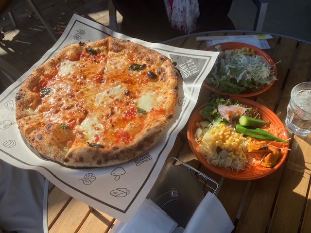 そして、今回ランチを頂くために予約していた園内のサニーピッツアというピザ屋さんに向かったのだ。ここはテラス席がワンちゃん同伴可になっているのだ😆。
