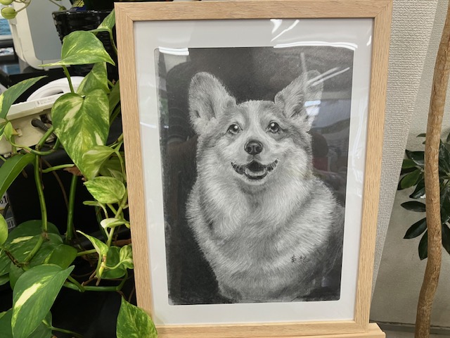 こちらはお店のお客様が、何と鉛筆で書いた福君の肖像画。凄いリアル感だな😲。