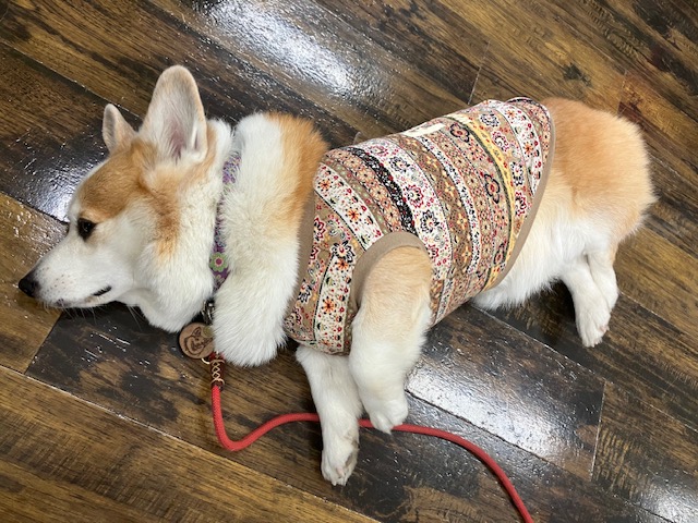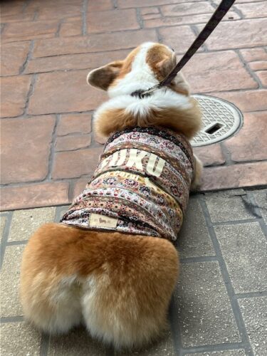 ちなみに福君は名前入りのかわいい服を着ているのだ。それにしても均整の取れたお尻だなぁ😁。