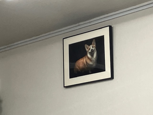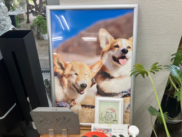 とにかくこのお店は「コーギー」であふれているのだ。壁面には看板犬「福君」の肖像画😁。