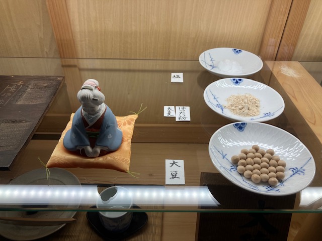 小さな木製ショーケース内には様々なサイズの「大徳寺納豆」😁。