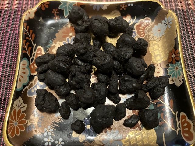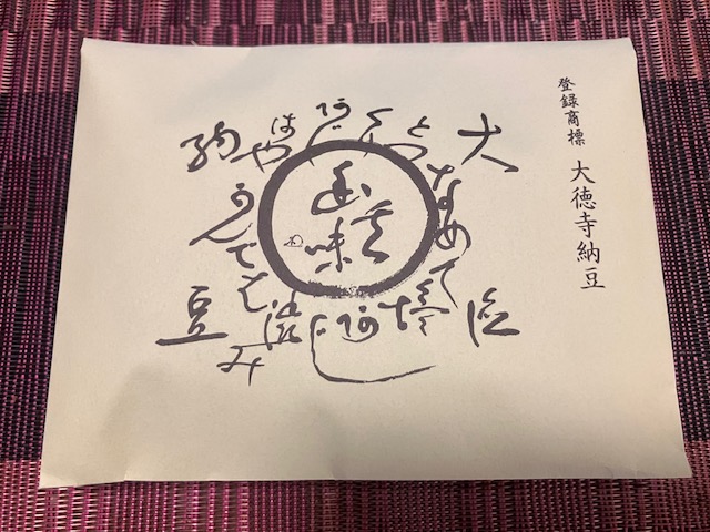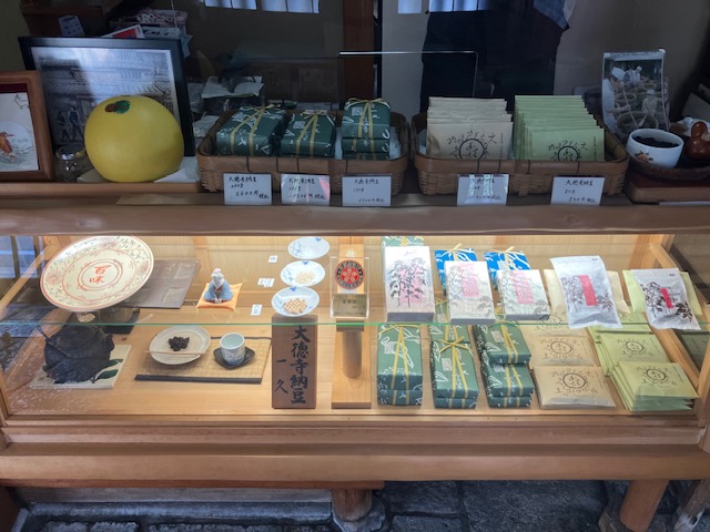 これが「大徳寺納豆」。真っ黒で、一見食べ物には見えないなぁ。食してみると独特の風味で塩気があり、お茶請けにピッタリ。このほかにも梅干しや塩昆布のように白ごはんに乗せたり、納豆や味噌汁に入れて頂くこともできるようである🤤。