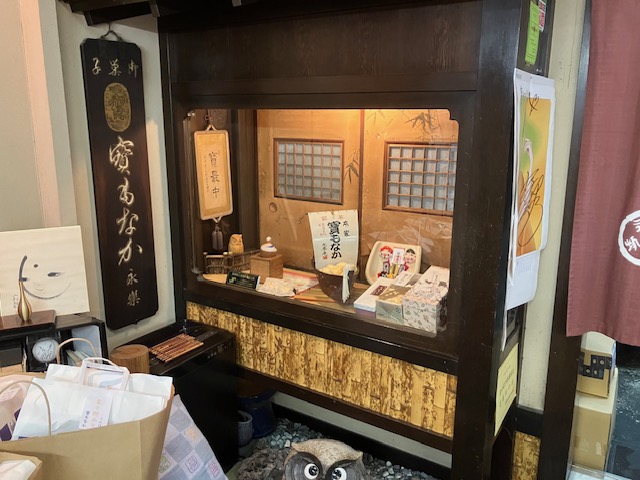 今回はショッピングモール内のお店のため、ぎりぎりお店の看板が見える位置で小太郎記念撮影を実施したのだ。いつも老舗旅費用捻出には四苦八苦しているのだが、これだけ縁起の良いもなかを頂いたのだから、金運が間違いなく上がるはずと考えている、誠に能天気なこたパパである😉。