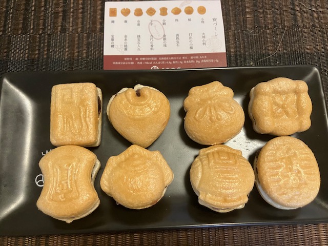 実はこの「寶もなか」は単品購入も可能なのだが、この時欲深いこたパパは、「これだけ縁起のよさそうなもなかは全て頂くべき」と判断したのだ。ということで、今回こたパパは全8種類が全て含まれている「寶もなか(10個:1650円)」を一箱購入させて頂いたのだ😆。