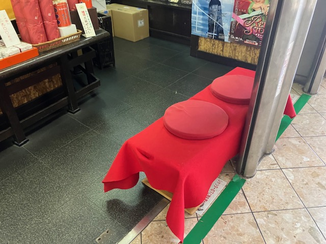 オープンスペース手前には真っ赤な休憩ベンチ🙂。