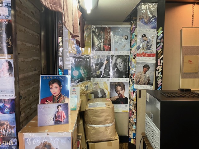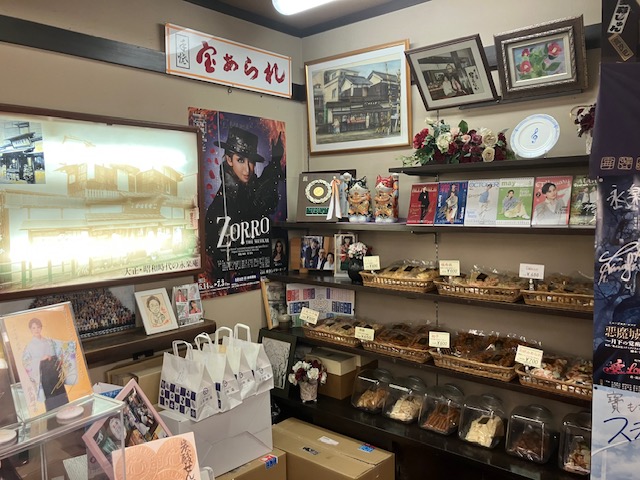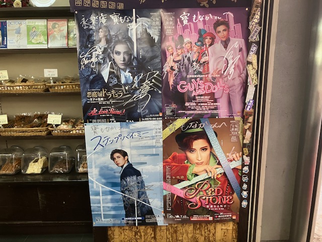 このお店には、各所にすぐ近くにある宝塚歌劇団のポスターや記念写真などが飾られているのだ。公演がある日はかなりのお客様が商品予約されるそうである😁。