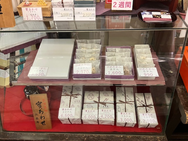 女将さんにお薦めをお伺いしたところ、8種類ある「寶もなか」とのこと。陳列台の上にはその8種類の「寶もなか」がずらりと陳列されているのだ😁。