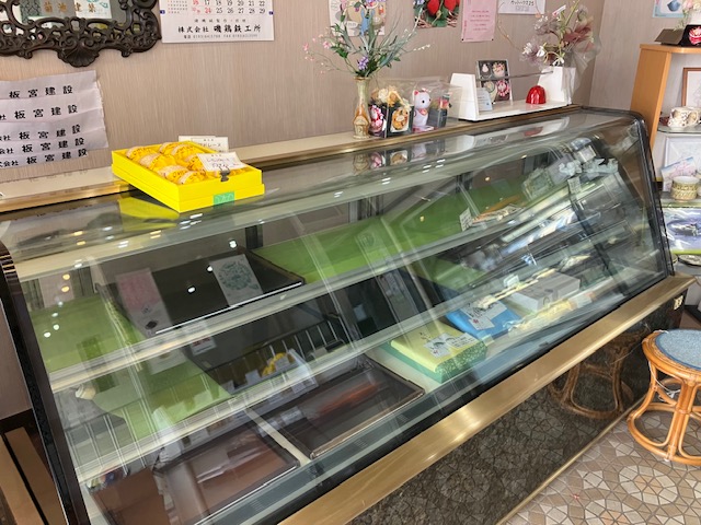 店内最奥部には冷蔵ショーケース。ご主人にお薦めをお伺いしたところ、「宮古クレープ」というお菓子とのこと😄。