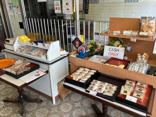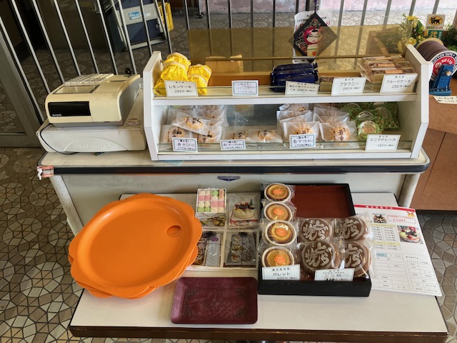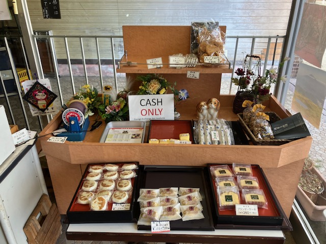 店内右手の様子。奥側にレジスペースがあり、陳列台には各種単品菓子が並べられているのだ😁。