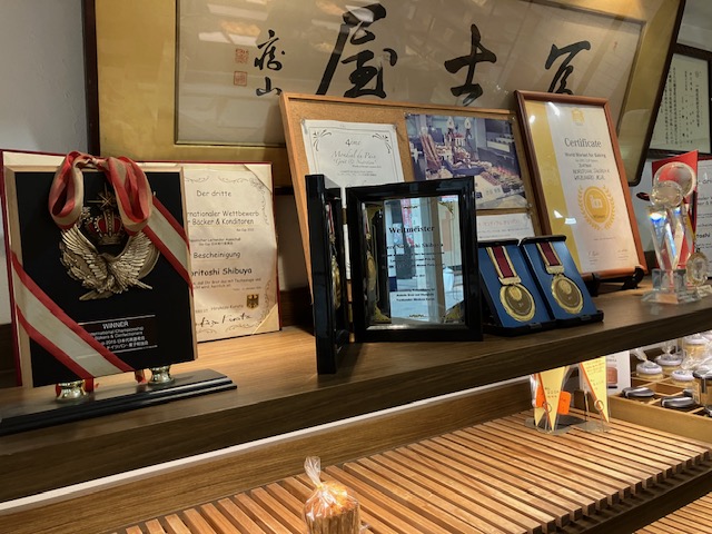 お店の一角には、過去受賞のトロフィーやメダルが陳列されているのだ😁。