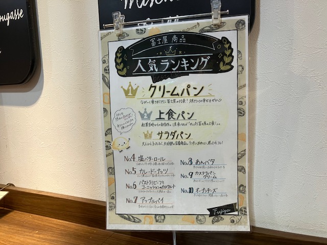商品人気ランキング表。お店の方にお薦めをお伺いしたのだが、やはり「クリームパン」だったな😁。