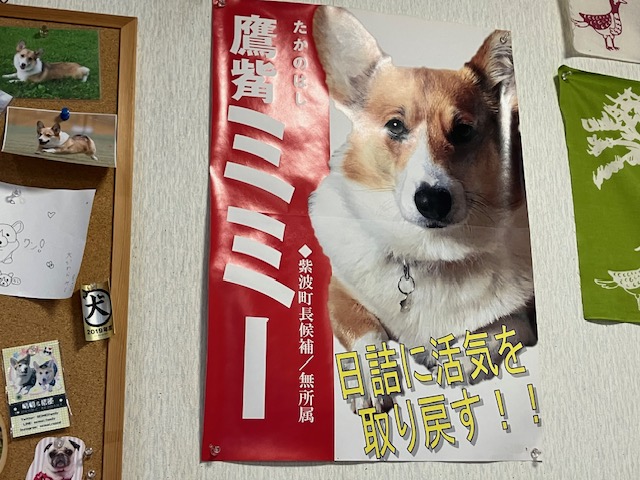選挙ポスター。ミミーちゃんは地元町長候補なのだ🤣。