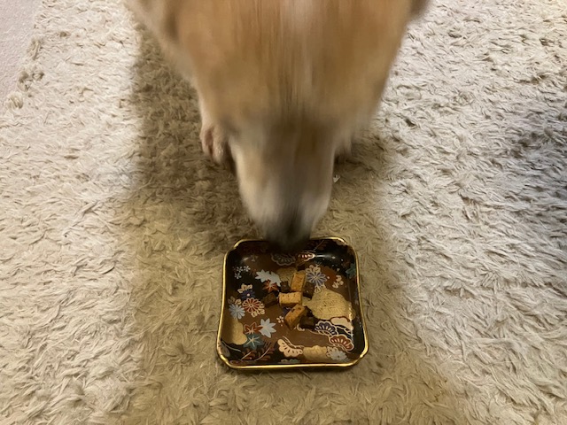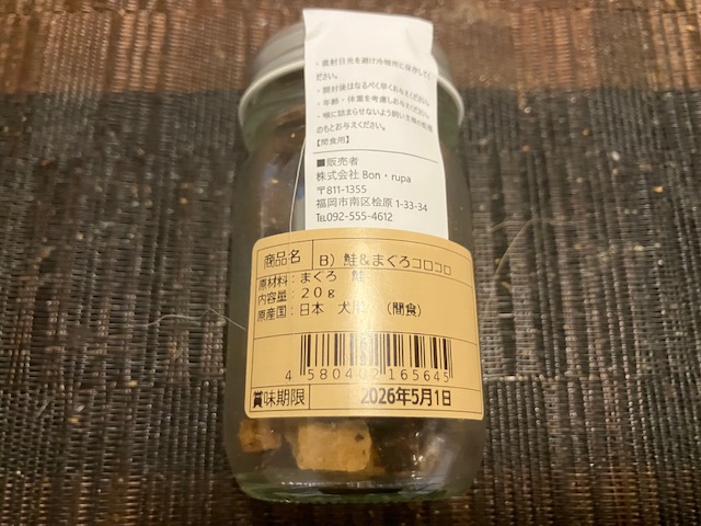 こちらはマグロのおやつ。小太郎は画像がぶれるほどの反応で瞬食だったな🤤。