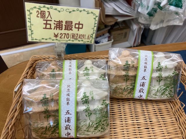 女将さんにお薦めをお伺いしたところ、五浦海岸の六角堂を模した、二種類ある「五浦最中」とのこと😁。