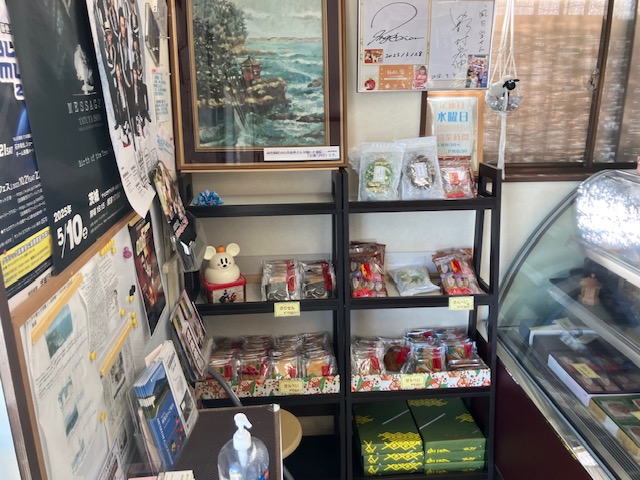 店内左手の陳列棚には、恐らく提携品の煎餅などが陳列されているのだ😁。