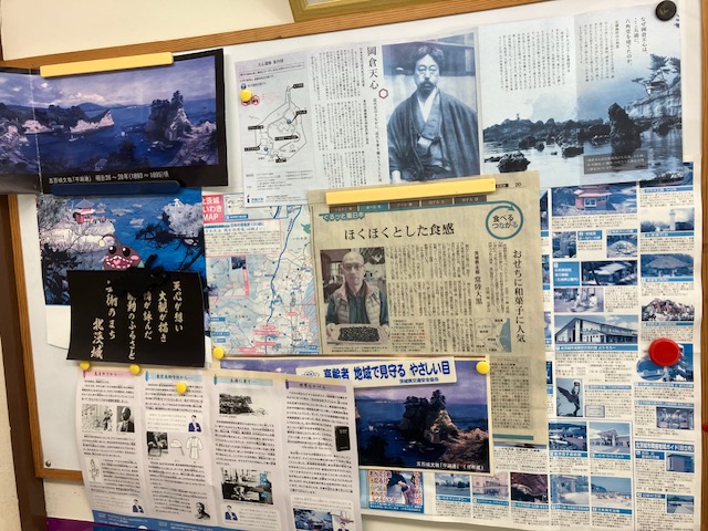 五浦海岸には、日本の伝統美術の近代化と保存に尽力した、岡倉天心が移り住んだ邸宅や、建立した六角堂などがあるのだが、その関連記事なども掲示されていたな🙂。