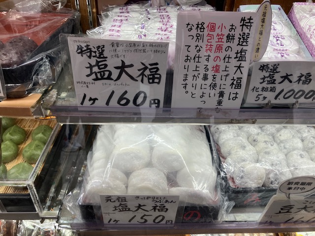 今回購入させて頂いたのは、いうまでもなく「元祖塩大福(150円)」。少し値段の高い「特選」もあったのだが、こたパパにとってはもちろん「元祖」の方が重要なのだ😁。