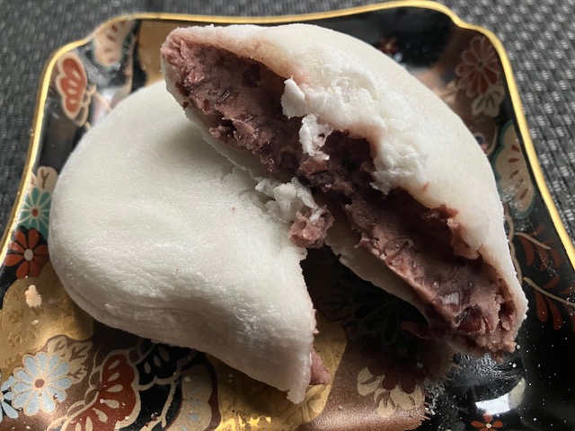 餅菓子は少しでも早く頂くのが鉄則である。ということで、今回は早速車の中で頂くことしたのだ😄。