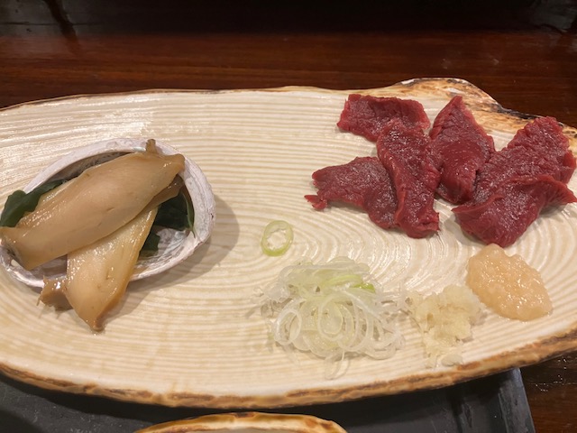 馬肉と煮貝があったのが意外だったが、山梨では昔から富士山荷揚げ用の馬が多く飼育されていたため馬肉文化があり、また江戸時代から保存食として煮貝が食されてきた歴史があるのだ😲。
