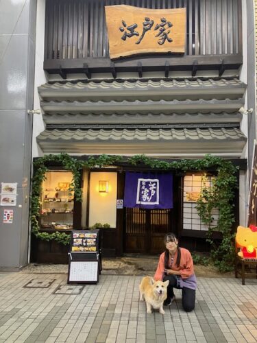 最後にお店の若い店員の方に会計して頂いたのだが、こたパパが小太郎と旅をしていることを知ると、是非会いたいとのことだったのだ。ということで、こたパパは駐車場から小太郎を連れてきて記念写真にご協力頂いたのだが、実はこの店員の方が当代の孫娘さんだったのだ🙂。
