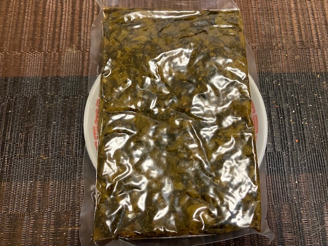 「めんたい高菜」を販売されているお店は複数あるのだが、今回こたパパが選択させて頂いたのは、福岡県糟屋郡久山町に本社を構える久原本家グループの博多椒房庵さんが提供されている、「めんたい高菜(864円)」である😆。