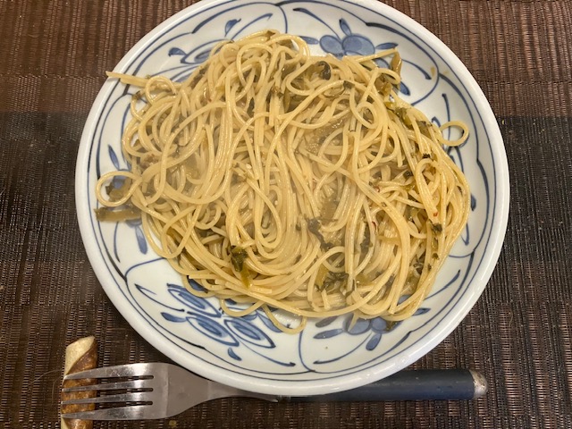 この商品で、こたパパはどうしても試したかったメニューがあるのだ。それがパスタである。何せ、めんたいこも高菜も単品でパスタアレンジできる食材である。作り方はシンプルに、通常のペペロンチーノ(ベーコン唐辛子抜き)にこの商品を加えるだけ。もちろんかなり美味いのだが、ベーコンはあっても良かったかな🤤。