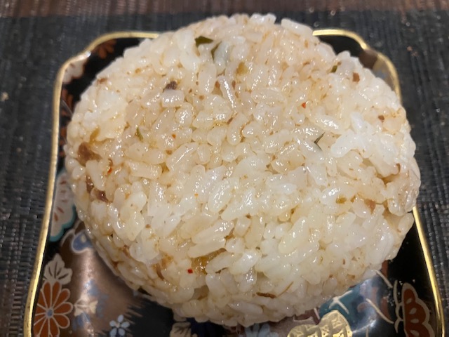 そしてやはり最近マイブームとなっている、おむすびを試さないわけにはいかないなぁ。今回はあえて海苔を巻かずに試してみたのだが、やはりご飯の時よりも格段に美味くなるのだ🤤。