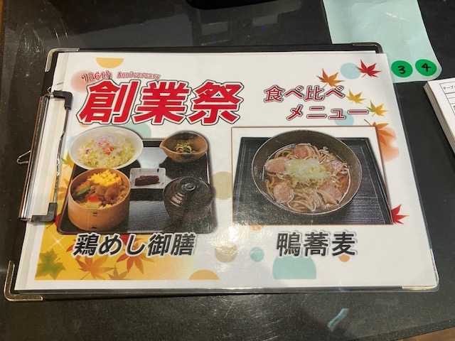 今回訪問させて頂いた日が、丁度お店の「創業祭」と重なっており、どちらかのメニューを頼むようである。ということで、こたパパはもちろん、お店の看板メニューである「鶏めし御前」を注文させて頂いたのだ😆。