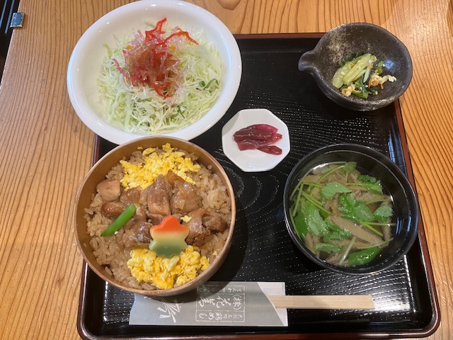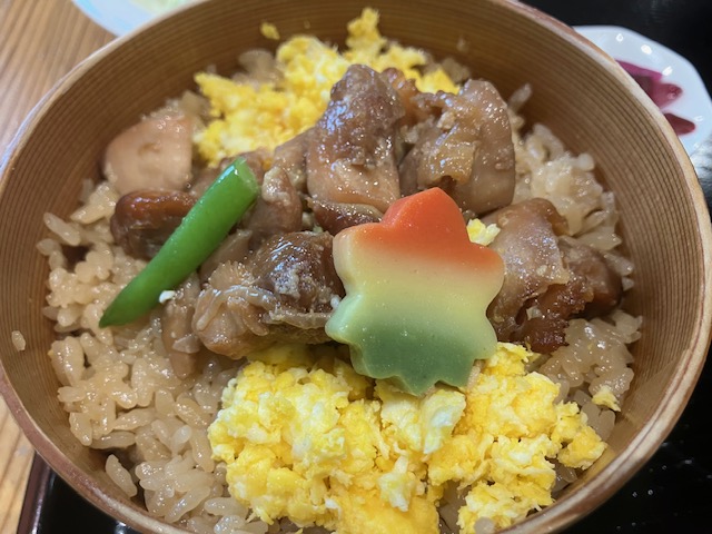 メインの「鶏めし」は、出汁で炊かれたご飯に、プリプリの甘辛鶏肉と卵が見事にマッチした、味わい深いおいしさ。いや本当にメチャクチャ美味い。こちらのお店は、駅弁の「鶏めし弁当」も超有名なのだが、やはり出来立てほかほかの「鶏めし」の美味しさは格別だなぁ🤤。