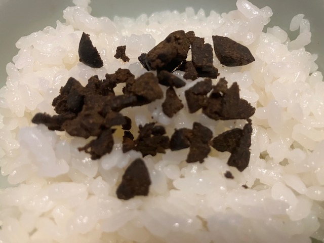 食してみるとお互いの個性の良いところが合わさる感じで美味しい。こたパパ的には、白ごはんよりもこちらの方が好みだったなぁ🤤