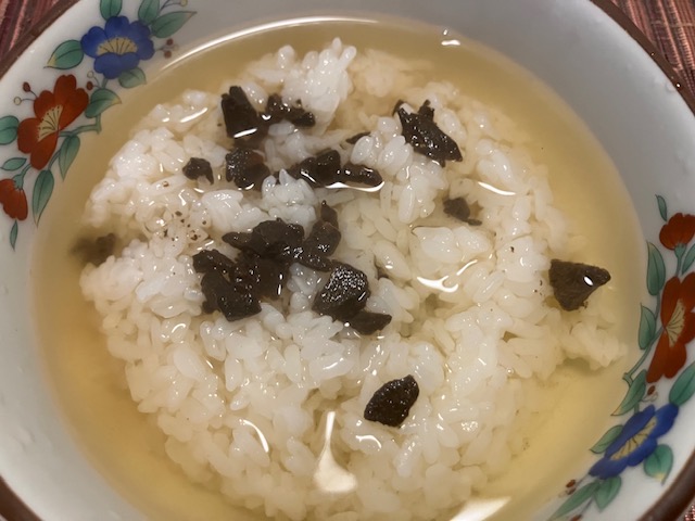 次にお茶漬。少々個性のあるほうじ茶で🙂。