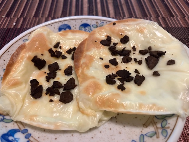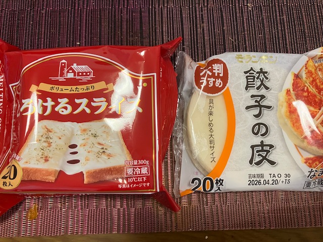 最後にチーズとの相性を試したのだ。ピザにも合うとあったが、高いので餃子の皮ととろけるチーズで😅。