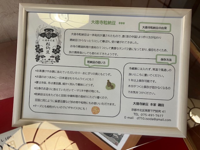 ショーケース内は「大徳寺納豆」のみだったな😄。