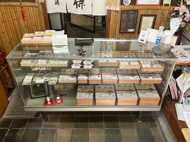 店内正面に小さなショーケースが設置されており、各種商品詰め合わせなどが陳列されているのだ🙂。