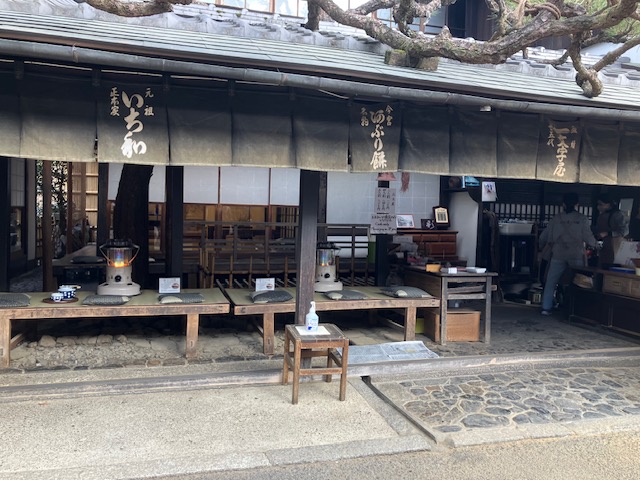 京都市北区紫野にある今宮神社は、今から1000年以上の昔の994年に主に疫神退散を目的に創建され、このほかにも健康長寿や、「玉の輿」という言葉に代表される良縁結びの神様としても信仰が厚いのだが、その参道北側に堂々たる風格のお店を構えるのが、一文字屋 和輔(通称:一和)である。今年で何と、25代創業1026年という、日本最古の超老舗飲食店なのだ😁。