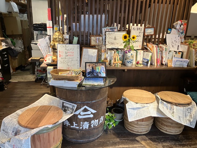 入口正面の様子。ぬか漬けの樽がたくさん置いてあるのだ🙂。