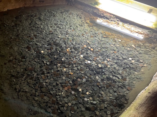 経路途中にある水のたまったくぼみには、お賽銭的な小銭。しかし凄い量だなぁ。誰かが始めてからずっと続いているんだろうな🤔。