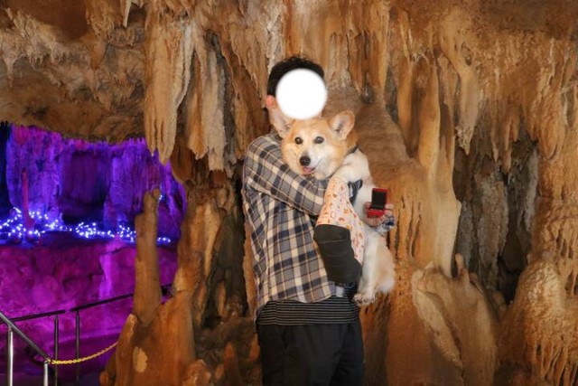 そして帰りに写真を見せてもらったときに、係員の方が意外な事を言われたのだ。実はこの洞窟は抱っこかカバンの中ならペットOKで、小型犬はよく連れて来られるとのことだったのだ🙂。