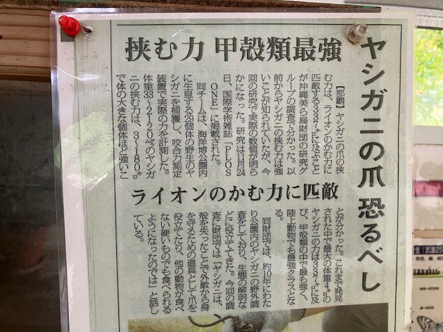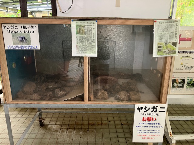 中に入ると、ヤシガニがお出迎え。結構強いんだな😲。
