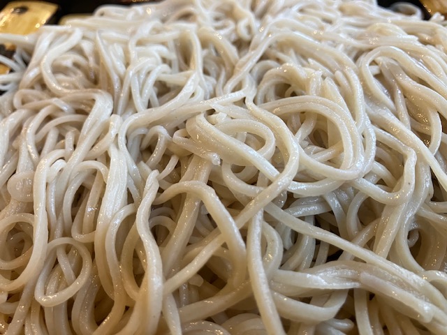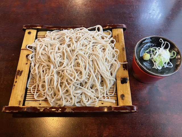 蕎麦の実の中心部だけを使った「さらしな」なので、麺は当然白っぽく細め。まずはそば通っぽく何もつけずに一口頂いたのだが、ちゃんと蕎麦の香りが楽しめるのだ。つゆは鰹の効いた甘め。わさびを蕎麦に少し乗せ、つゆに半分くらい付けて頂くのが、こたパパベストの食べ方だったな😁。