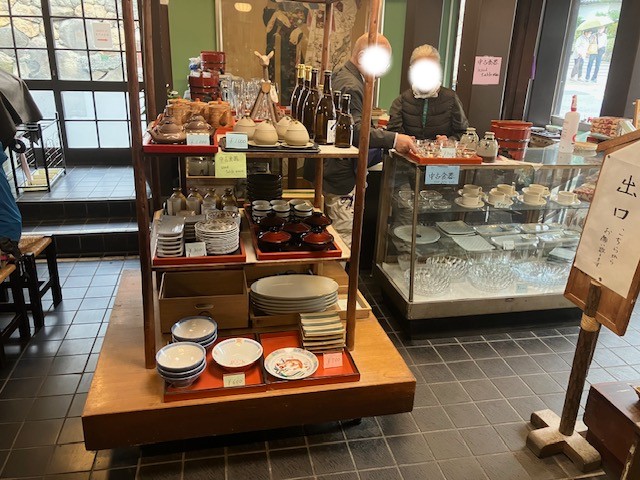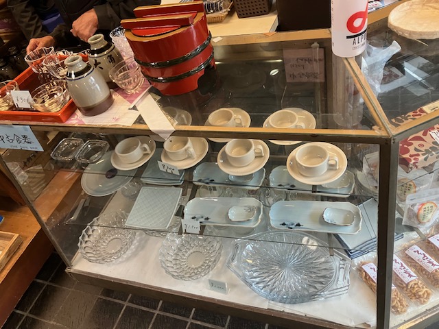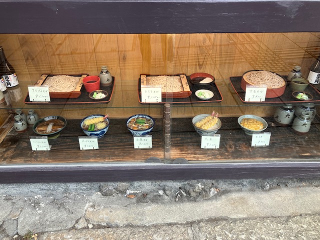 建物中央に蕎麦打ち台があるのだが、その下のショーケース内には商品サンプルが展示されているのだ😁。