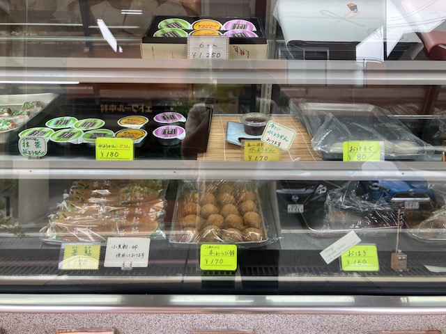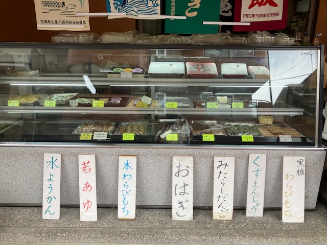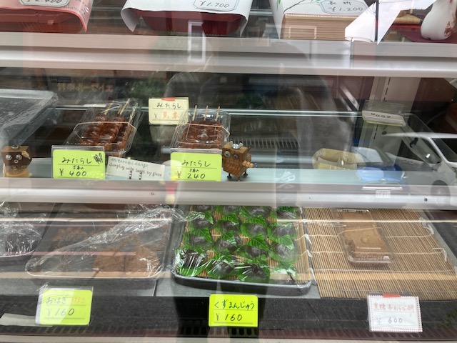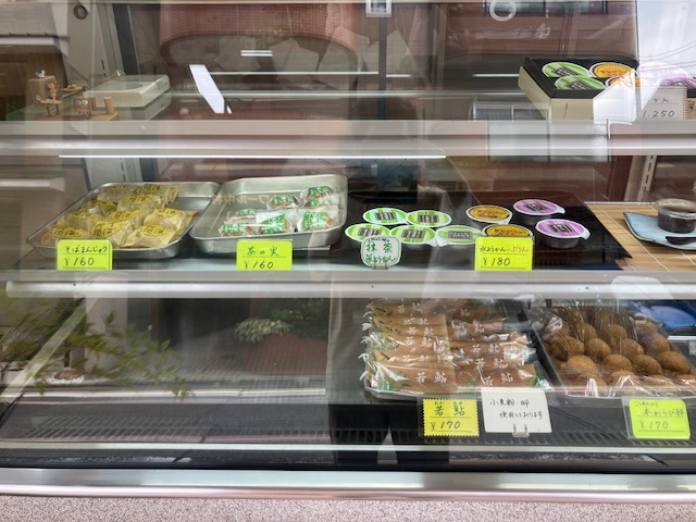 入口正面にはショーケースが設置されており、お団子や各種お饅頭、羊羹などの伝統的和菓子が陳列されているのだ🙂。