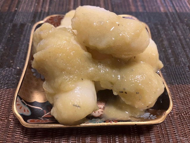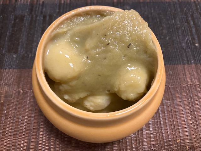 「くるみ餅」の賞味期限は当日中なので、早速帰宅後に頂くことにしたのだ。蓋を開けて少々驚いたのだが、形状はこたパパの想像とかなり異なっていたなぁ😲。